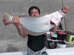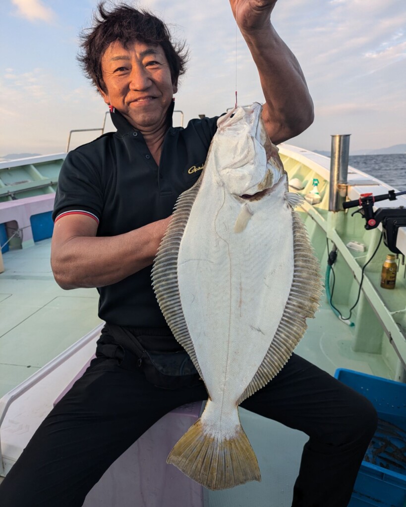 ノマセ釣りでは、ヒラメの食いが抜群です。50~60cmの良型がメインで、時おり70~80cmオーバーの大判もまじり、複数尾上げる人もチラホラ。中には6尾上げる人もいるなど、絶好調です。ヒラメのほかには、アコウ、ガシラ、アオハタ、マトウダイ、青物などもまじります。