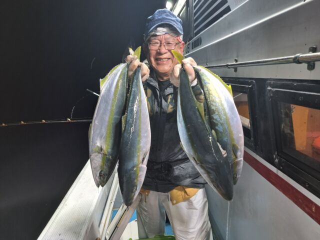 半夜の五目釣りは、メジロ、ハマチなどの青物を主体にマダイ、チダイ、レンコなどで土産十分です。