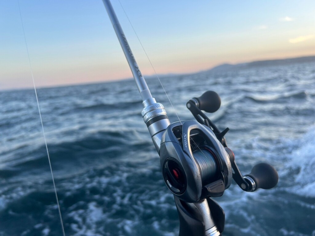 ちなみに、今回使用したリールは「スティーレSS150PG」。軽量かつコンパクトで、特に注目すべきはPGリールの1回転での巻き取り量です。巻きが軽く、3~5mの幅を多めのアクションで誘い、アオリイカに猛アピールできました。素早くイカが抱いてくるので、おすすめのリールです。