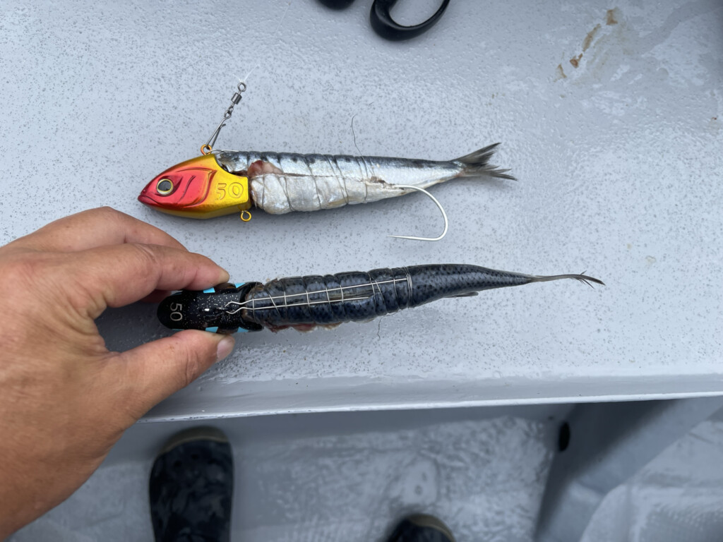 サンマを代用して大きく付けるのもアリです。今回はドラゴンこそ出ませんでしたが、よいサイズのデカタチに出合えました。