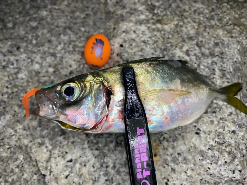 中紀の漁港でアジ、ウリ坊、イケカツオを飛ばしサビキで。