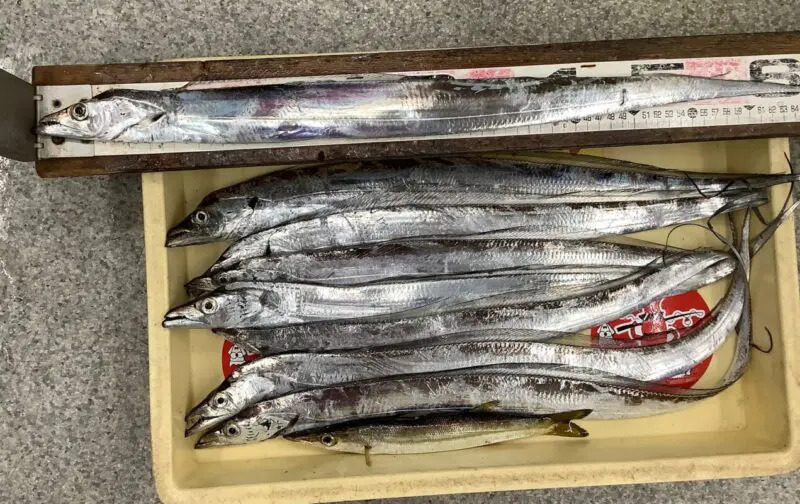 紀ノ川河口でタチウオ76.4cm頭に8尾、カマス30cm。