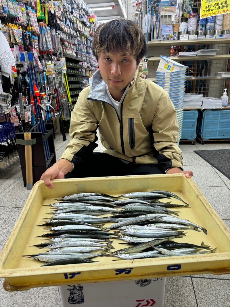 【堺周辺】で17日木村氏サヨリ25cm頭に38尾を石ゴカイのウキ釣りで。