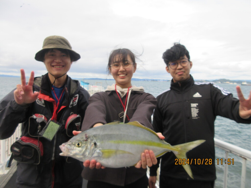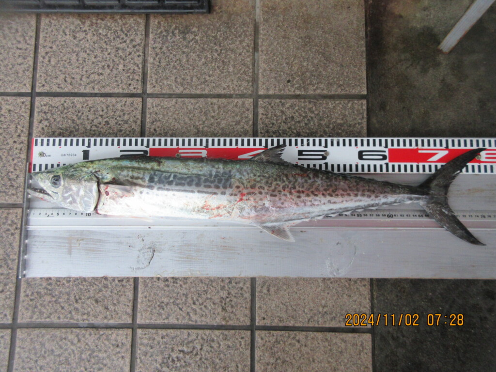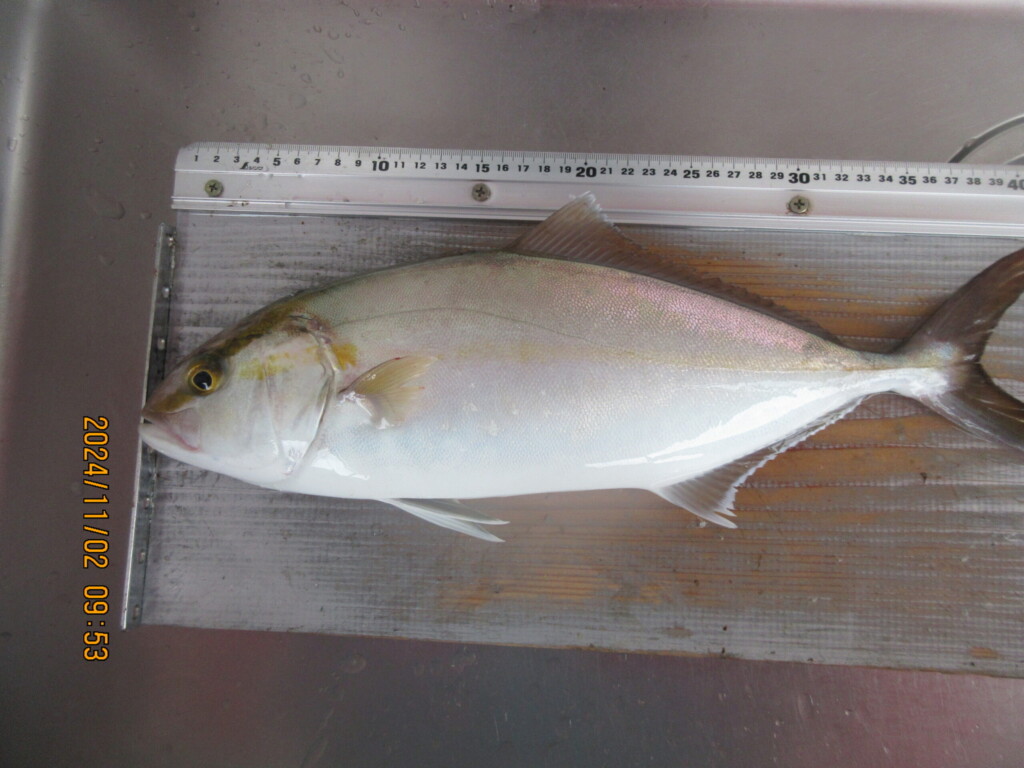 メジロ60cm、ハマチ44cm頭に5尾、ツバス38cm、シマアジ47cm、チヌ40.5cm、グレ25cm頭に8尾、ヒラスズキ40cm、カマス26cm頭に2尾、アジ33cm頭に24尾超、アオリイカ790g頭に10パイなど。
