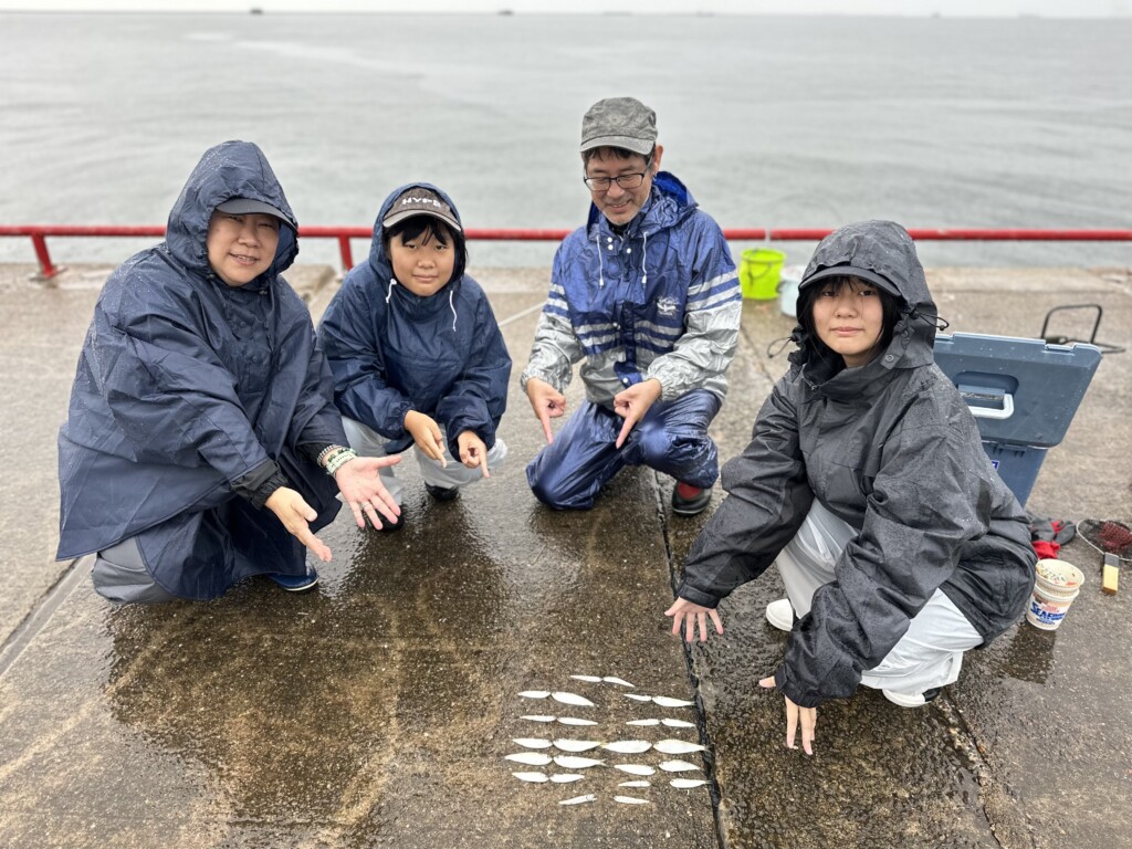 カタクチイワシ12cm頭に80尾、サッパ15cm頭に40尾、サヨリ23cm頭に250尾、チヌ25cm頭に2尾、グレ20cm1尾、キビレ20cm