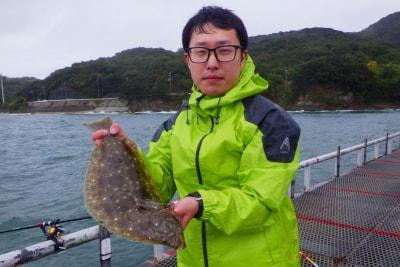 ヒラメ53cm、ヤイトガツオ43cm、チヌ40cm、グレ30cm2尾、ハマチ43cm、アジ30cm級も登場、ほかタチウオ、アオリイカなど。