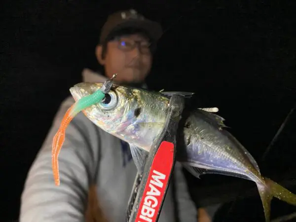 東二見人工島~播磨新島でアジやアオリイカが釣れています。