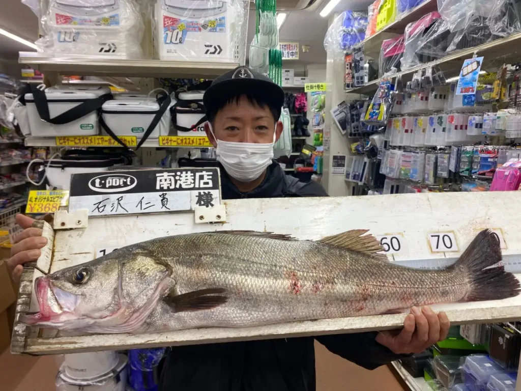 【南港周辺】で8日石沢氏スズキ83cmをルアーで。