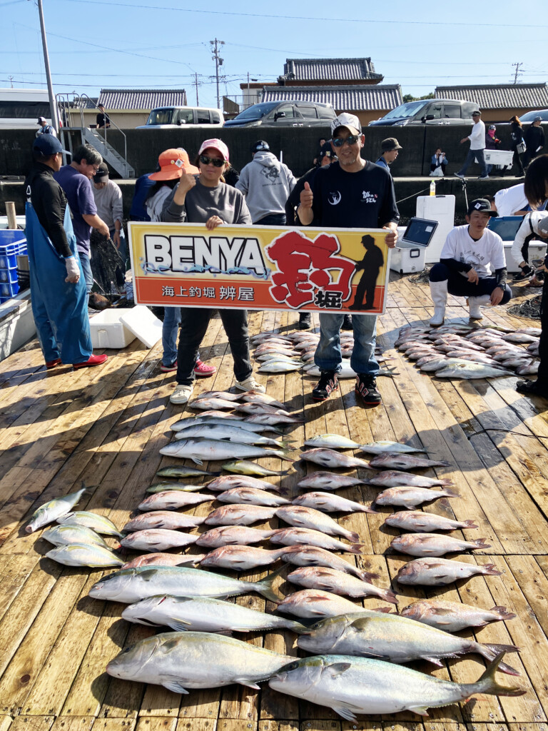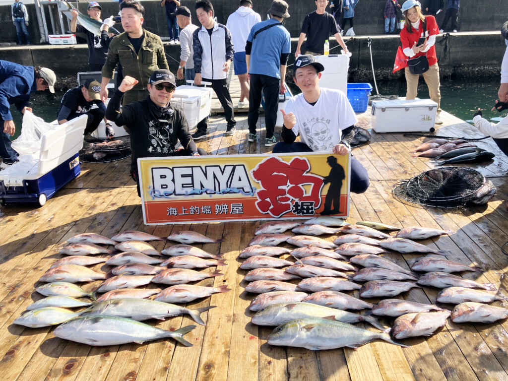 海上釣り堀辨屋では、「魚の美味しさには自信があるので、ぜひ1度釣りに来て、その味を知ってください。これから年末に向けては、マダイは1.2~1.3kg級、9kg級の大ブリ、メジロ、カンパチ、シマアジに、イサギや天然イシダイなども放流していきます」とのことです。