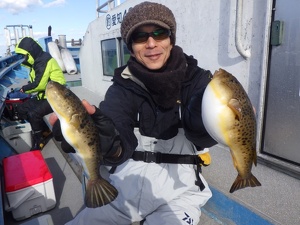 師崎沖は例年、冬になると美味しいフグが狙えるエリアですが、今年は型、数ともに釣れている当たり年です。