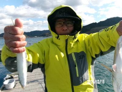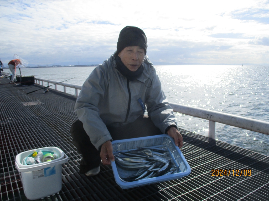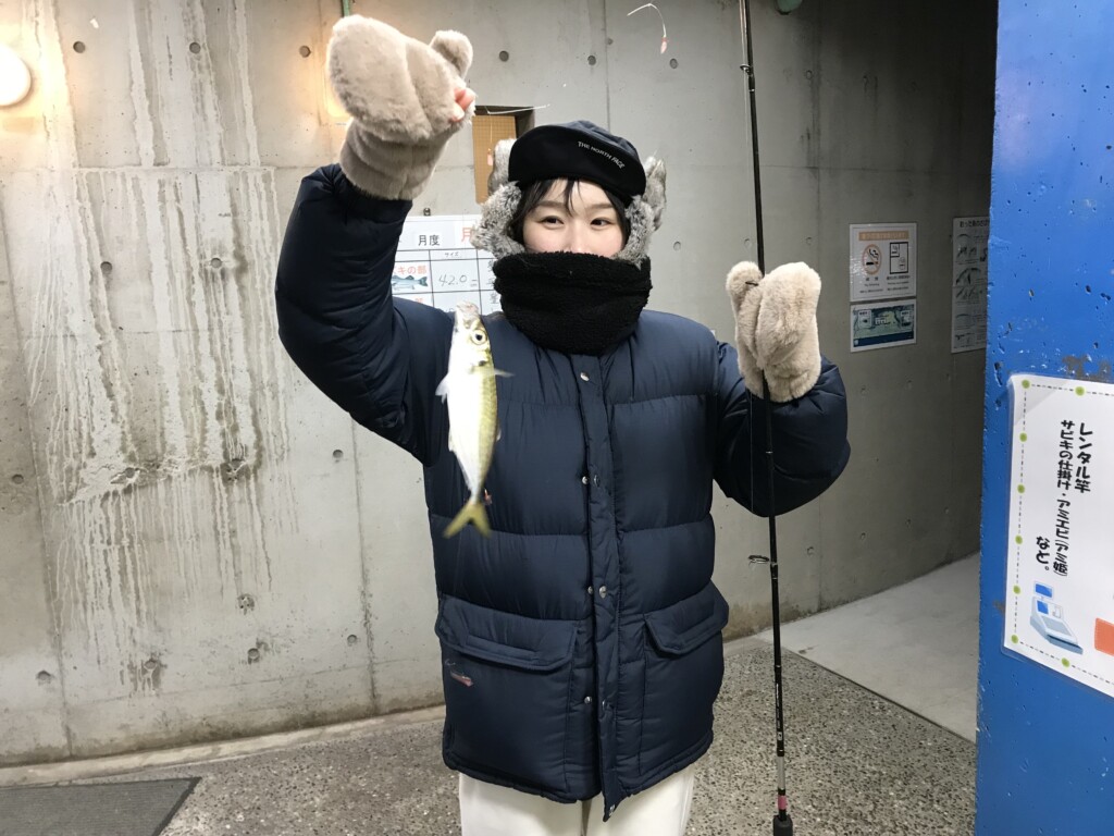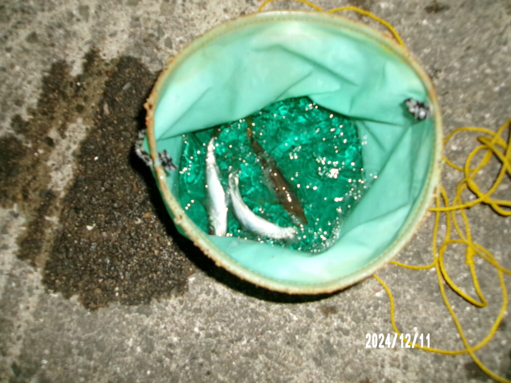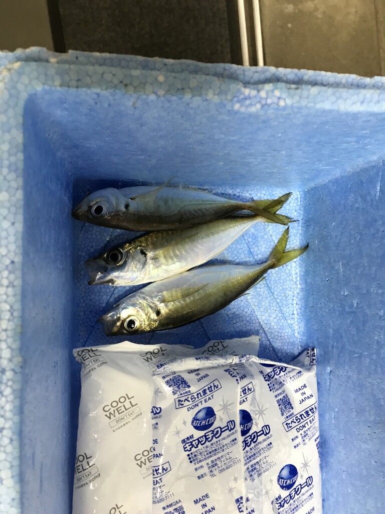 サヨリ15~23cm65尾、チヌ33~41cm6尾、カレイ35cm、アジ15~18cm12尾、ハゼ20cm、カタクチイワシ8~12cm6尾。