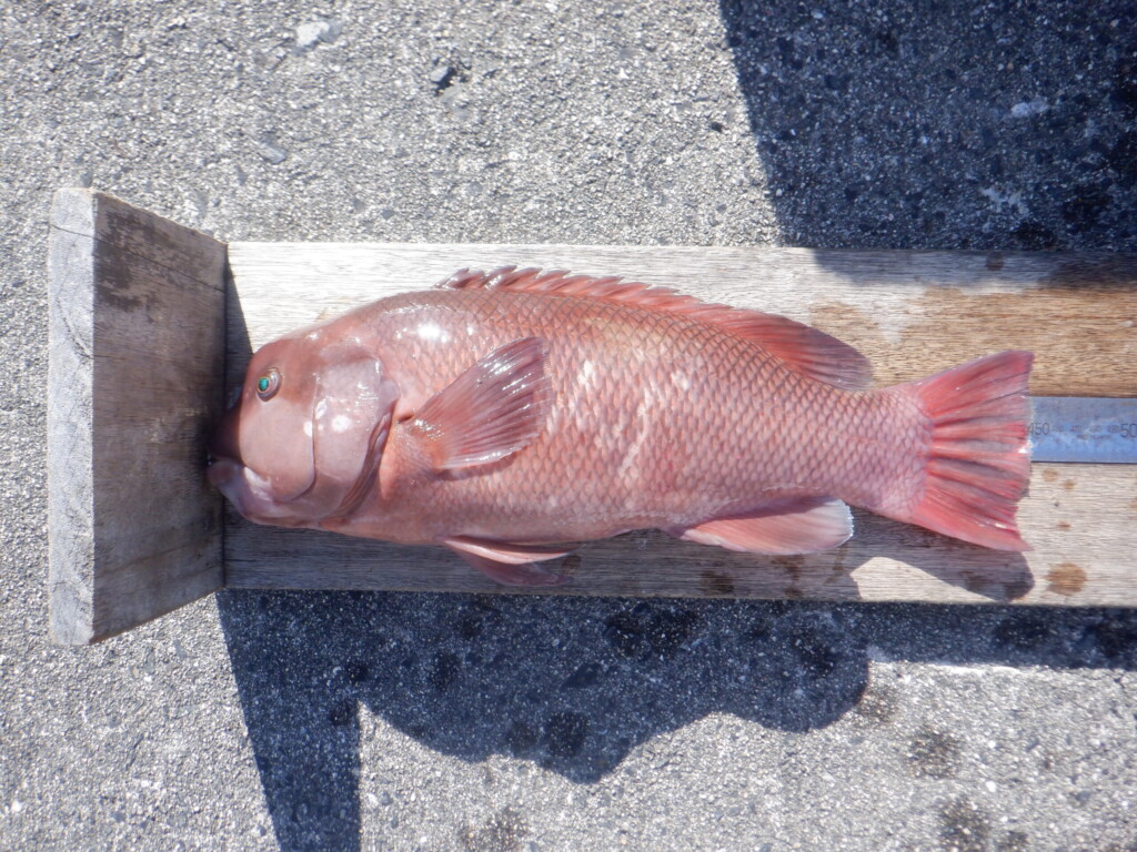 ガシラ21.8cm頭に4尾、グレ31cm、マダイ50cm、スズキ65cm、ウマヅラハギ28.5cm。