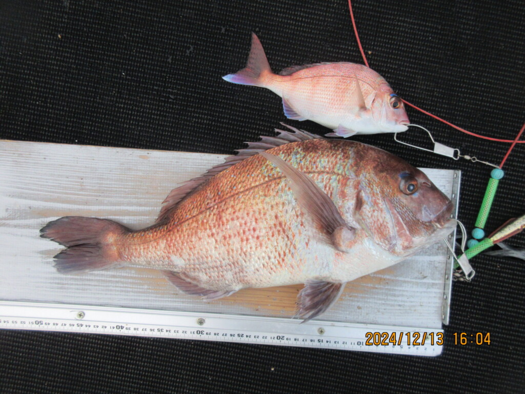ウマヅラハギ31cmと29cm、マダイ50.5cm。