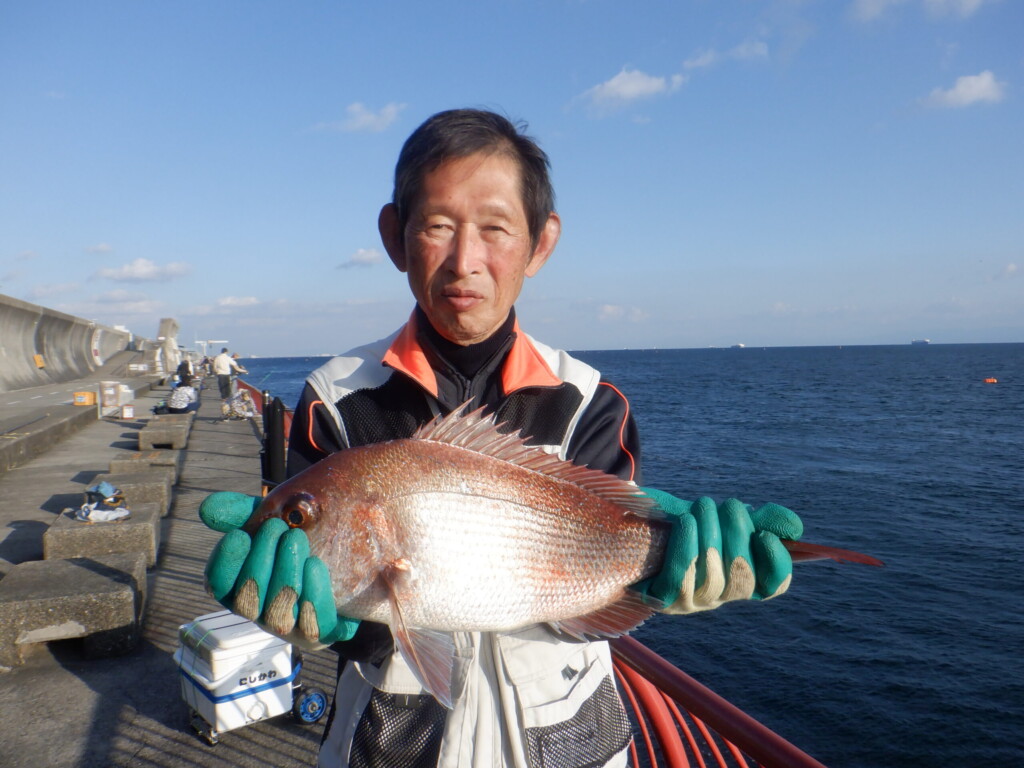 マダイ62cm、カワハギ18cm頭に2尾、ハマチ51cm、カンダイ40~75cm4尾、サヨリ32cm頭に30尾、ガシラ21cm頭に3尾など。