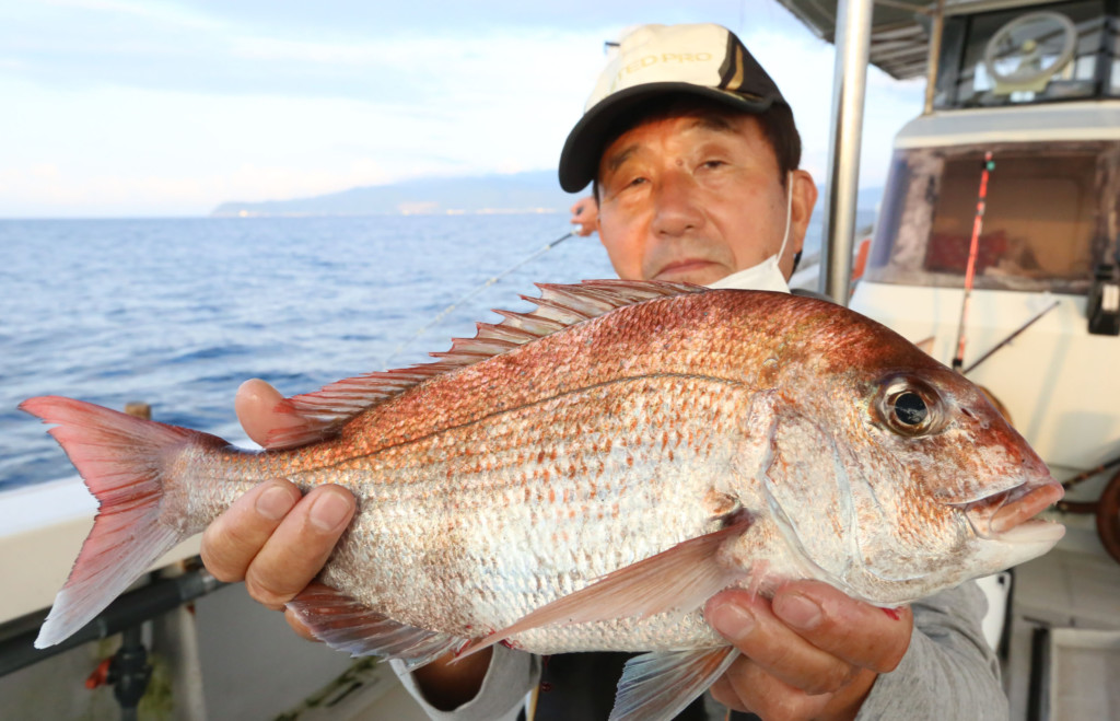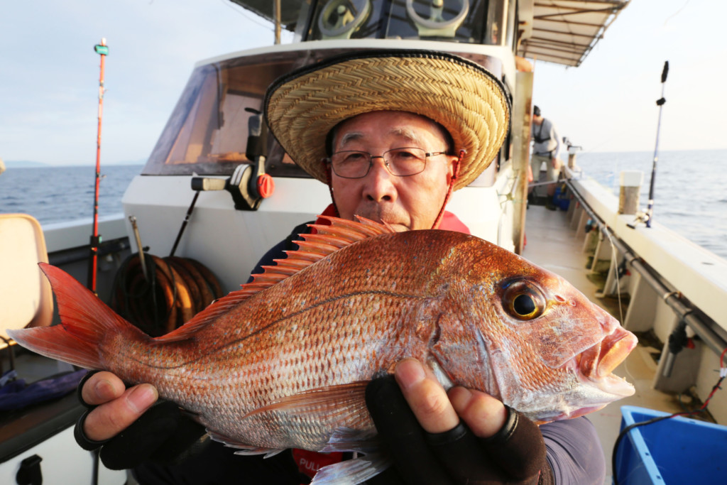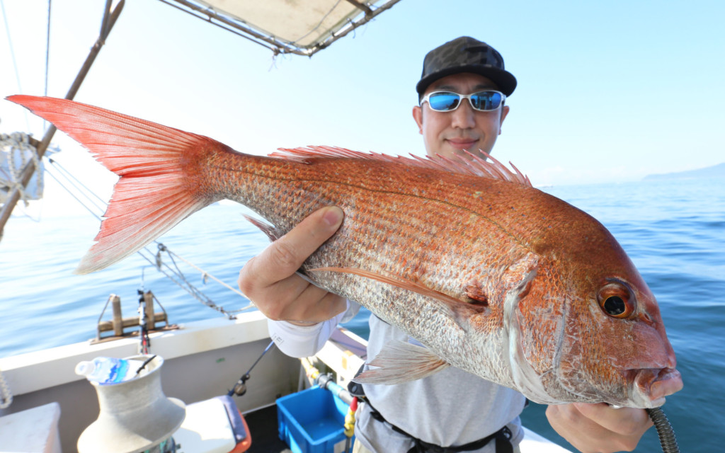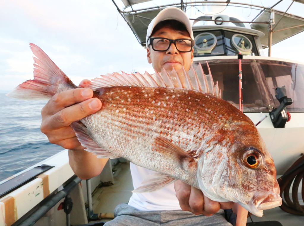 そこからはやり取りを楽しむ。しばらくして、海面に上がってきたのは40cm超えの食べ頃のマダイ。