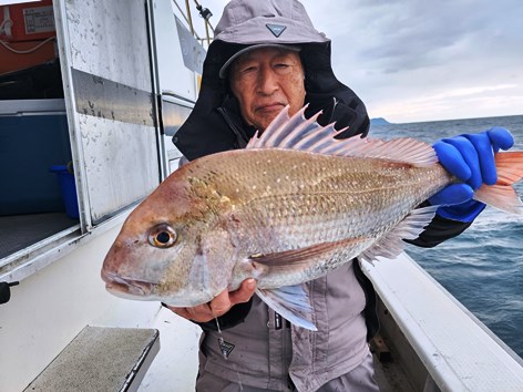 舞鶴沖は、天ビンズボ釣りでマダイ&青物主体の五目で好釣果が出ています。シケで出船日は少ないですが、マダイは30~65cm主体に上がり、ほかにヒラマサ、メジロなどの青物、アジやイサギ、チダイ、レンコダイなどが上がって、よい土産になっています。
