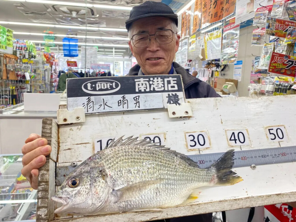 【南港大橋周辺】で21日清水氏キビレ39.4cmをキビナゴのブッ込み釣りで。