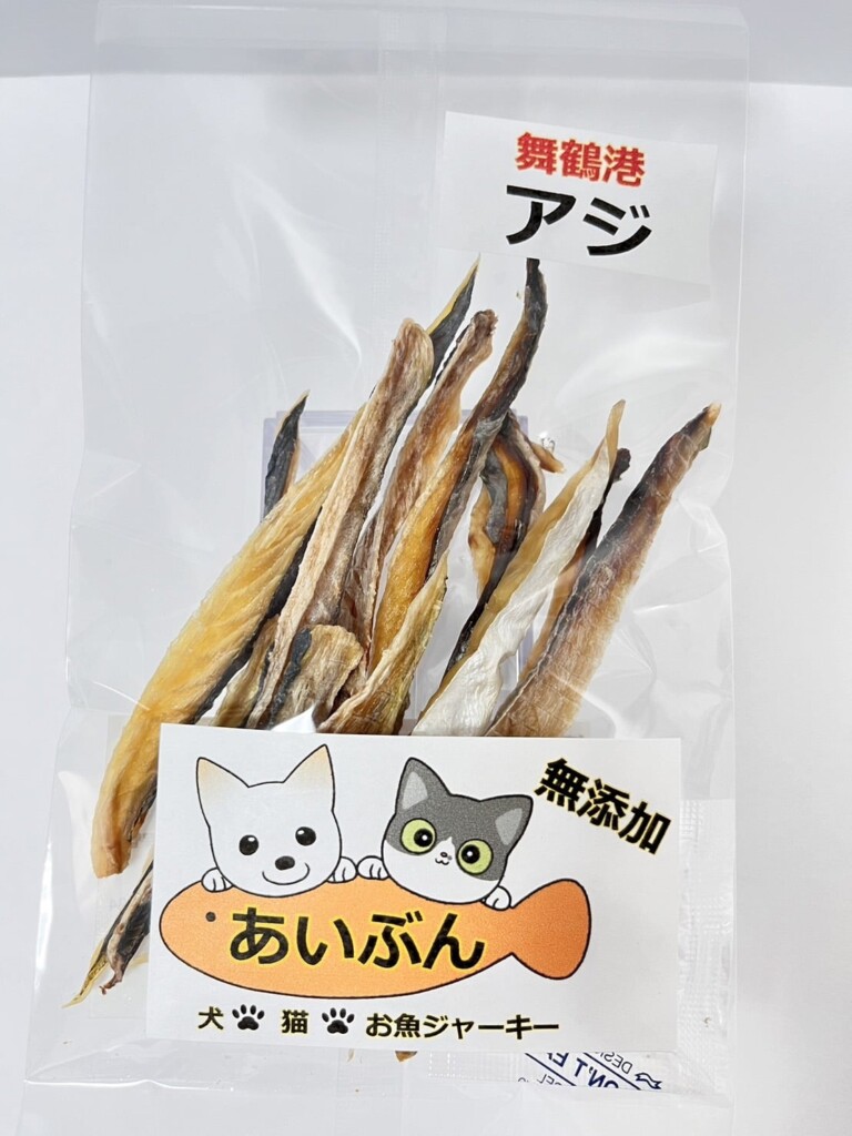 上の写真は、その商品の一例。舞鶴産のアジで作った、お魚ジャーキーです。