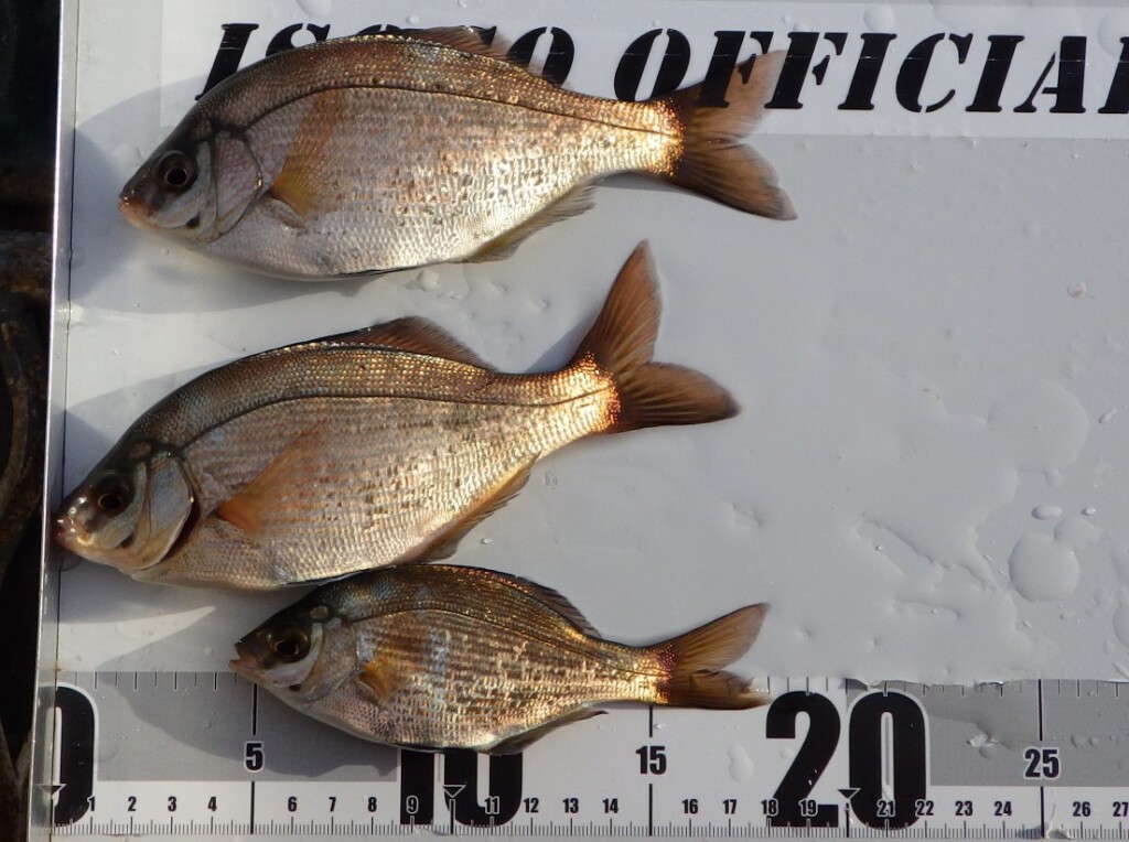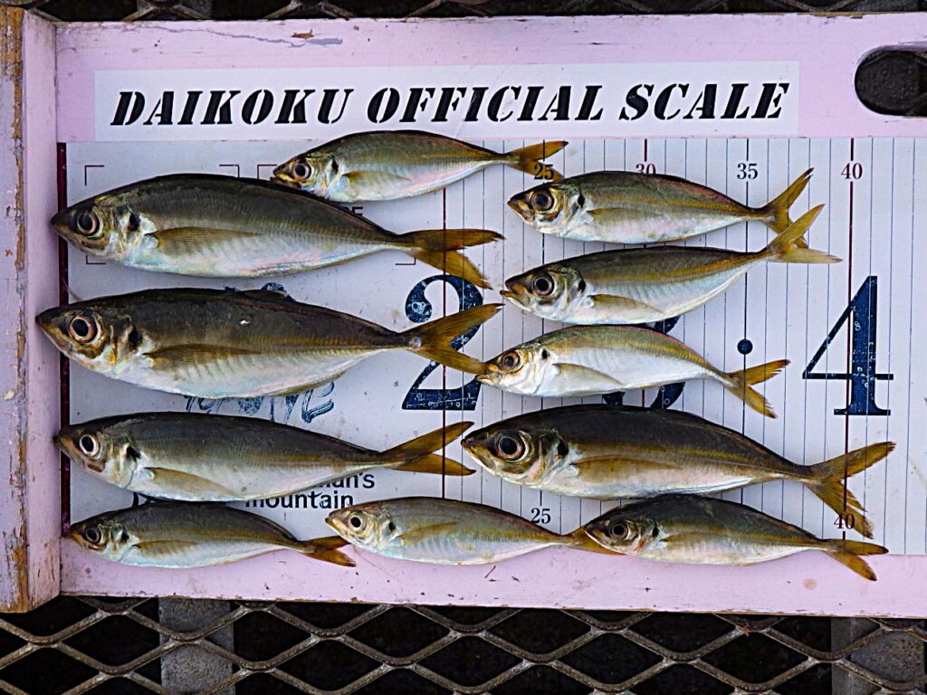 サビキで良型のアジが釣れていたほか、エビ撒き釣りでメジナやクロダイが好調でした。