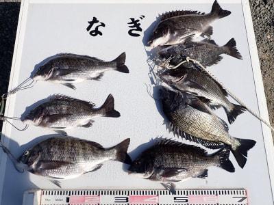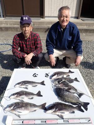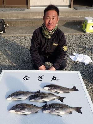 そのなぎ丸さんでは、8日松繁氏マダイ47cmとカンダイ41cm、山本氏グレ36.5cmと27cmにチヌ39~45cm4尾、鈴木氏チヌ35~42.5cm8尾、阪本氏チヌ35~47.5cm6尾と連日チヌが好調に釣れており、開幕直後から絶好調! さらに、3月2日には50cmオーバーの年なしチヌも登場しました。