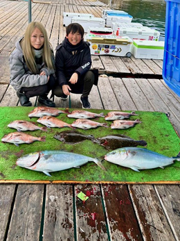 藤橋さん ブリ4尾、キングシマアジ1尾、カンパチ2尾、ハタマス1尾、シマアジ2尾、イサギ7尾、マダイ17尾