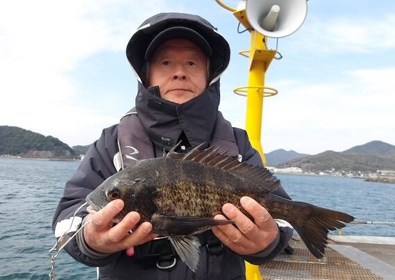 波方港でアコウ30cm頭に2尾、マダイ45cm。
