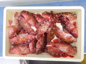 師崎沖では、ガシラが爆釣中! 数釣りを楽しむことができます。そのほか、ヒガンフグ、コモンフグ狙いでも出船しています。