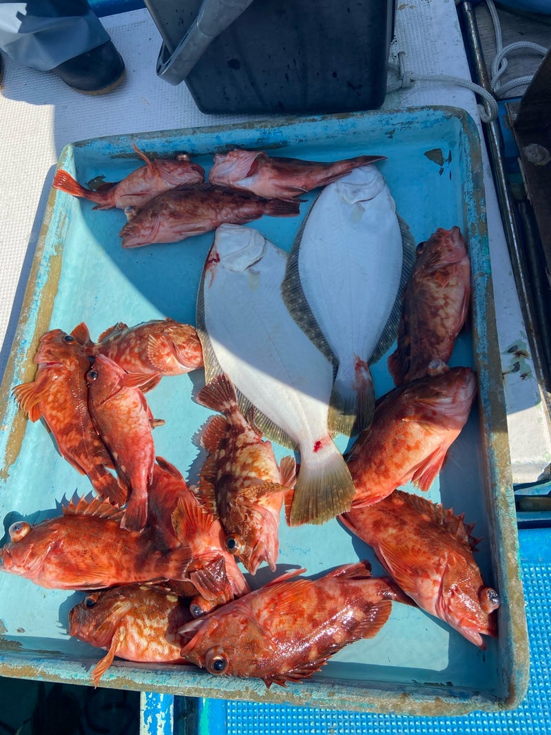 山海発の忠栄丸では泳がせ釣りで出船中。ヒラメが有望です。のほか、ヒガンフグ狙いでも出船中。
