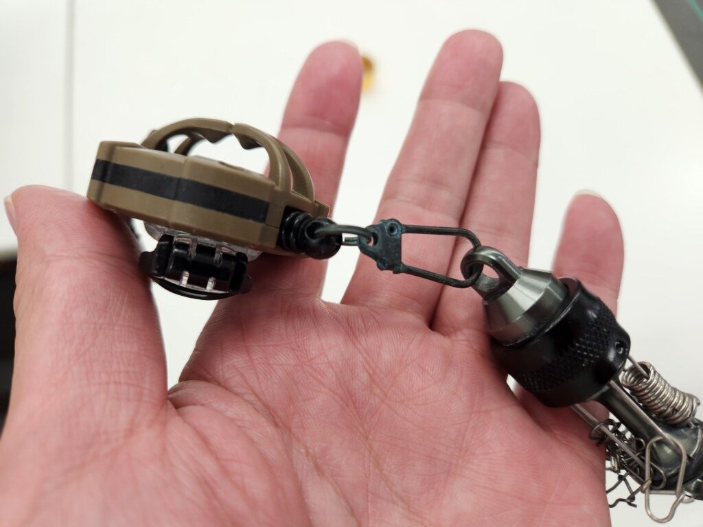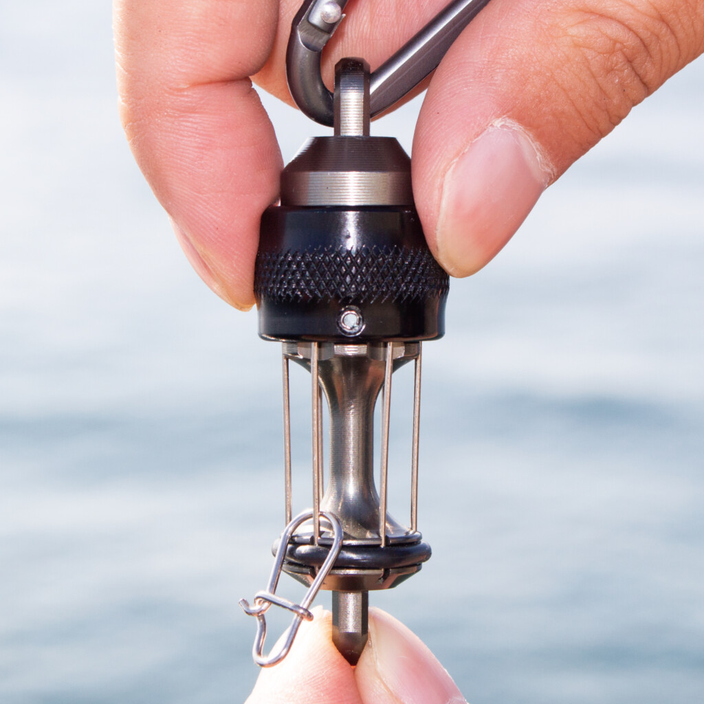 実際に釣り場へ持ち込む際は、カラビナリールなどに装着すると、さらに使いやすくなります。第一精工の「MCスナップキャッチャー」などと一緒に使うのがオススメ。「MCラインカッター」も装着しておけば、手元で全て完結してしまうほど便利になりますよ。