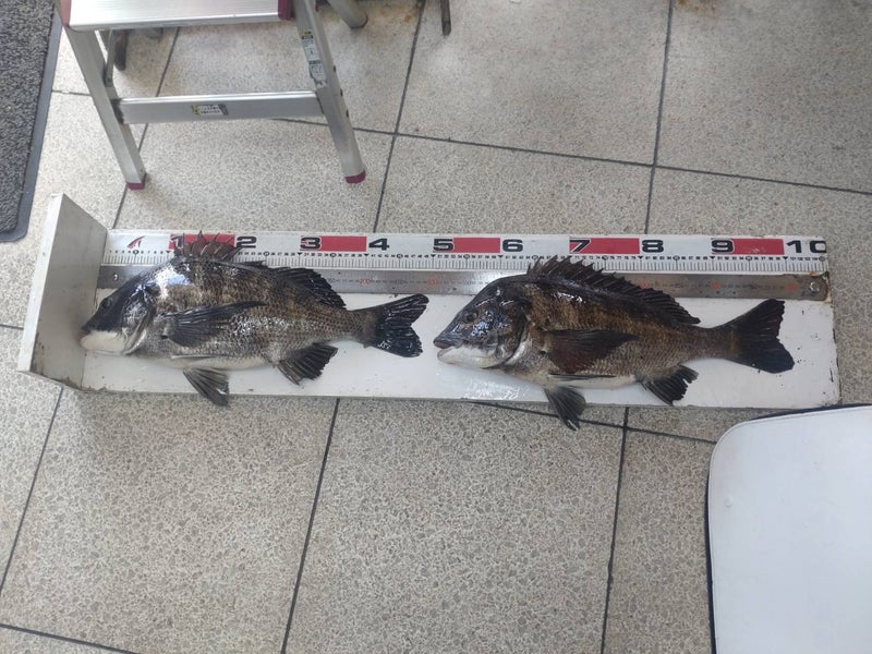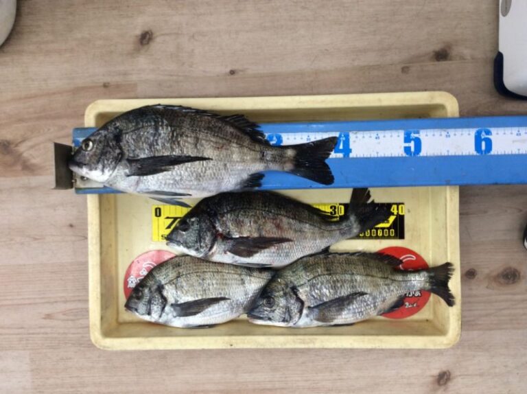 加太のカゴ釣りでタケモト氏チヌ39.5cm頭に4尾。
