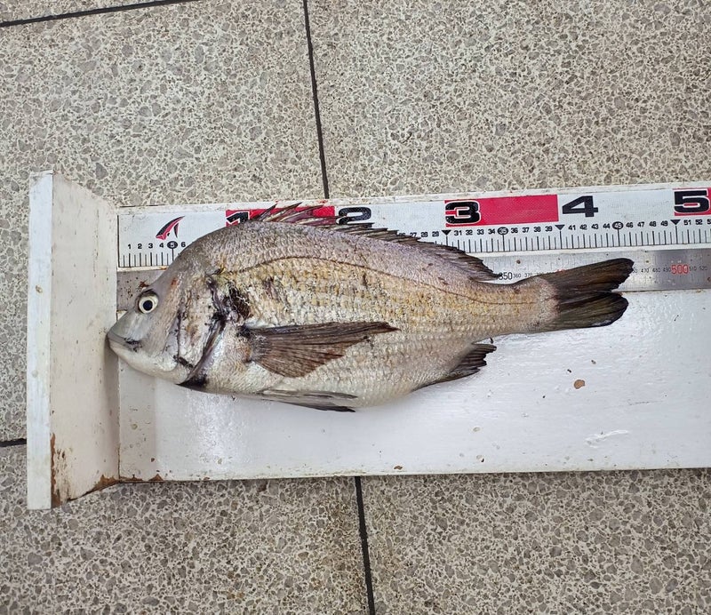【かもめ大橋周辺】で27日チヌ46cmをエビ撒き釣りで。