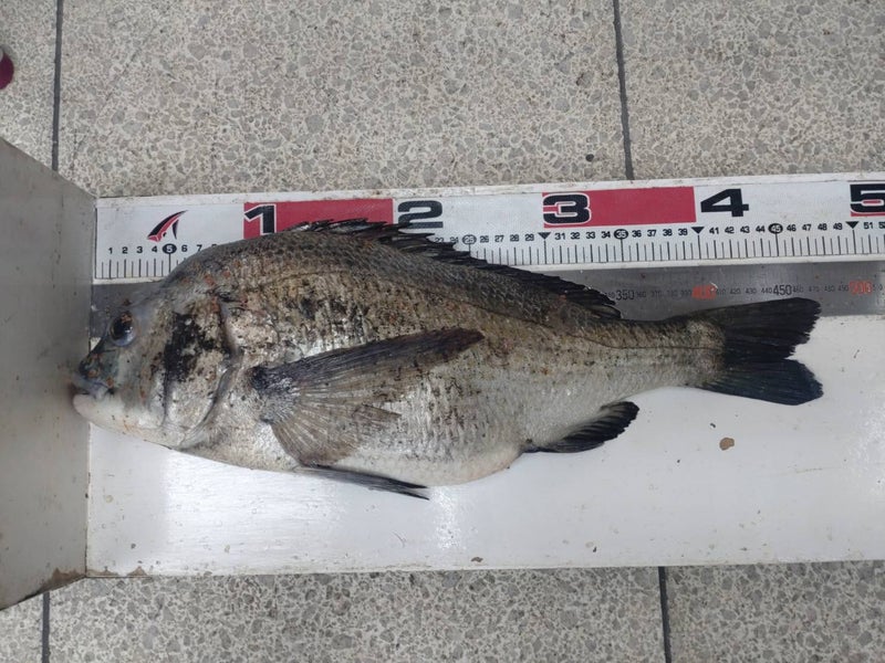 【南港大橋周辺】で30日チヌ47.5cmをフカセ釣りで。