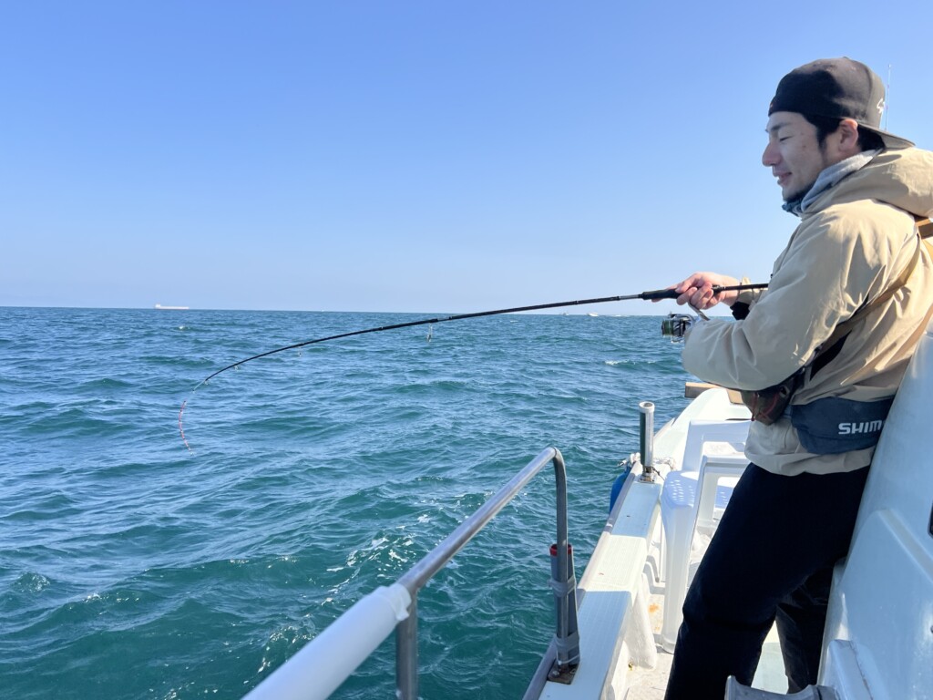 誘い方もさまざまなで、底をトントンするのがよいことや、底から少し上まで誘い上げた後のフォールでアタリがでたりと、その日、その時の状況によってアタリパターンはコロコロとかわる。とにかく、最も大切なのは、「しっかり掛けていく」と、言うことだ。