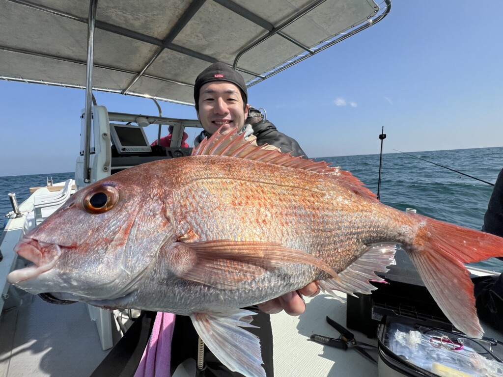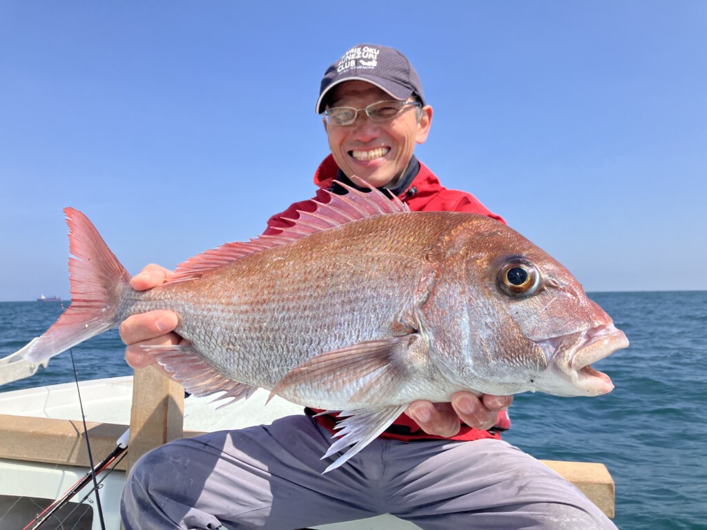 若手だが、掛けの釣りにおいて、エキスパート的な江見氏はマダイ4尾をキャッチした。