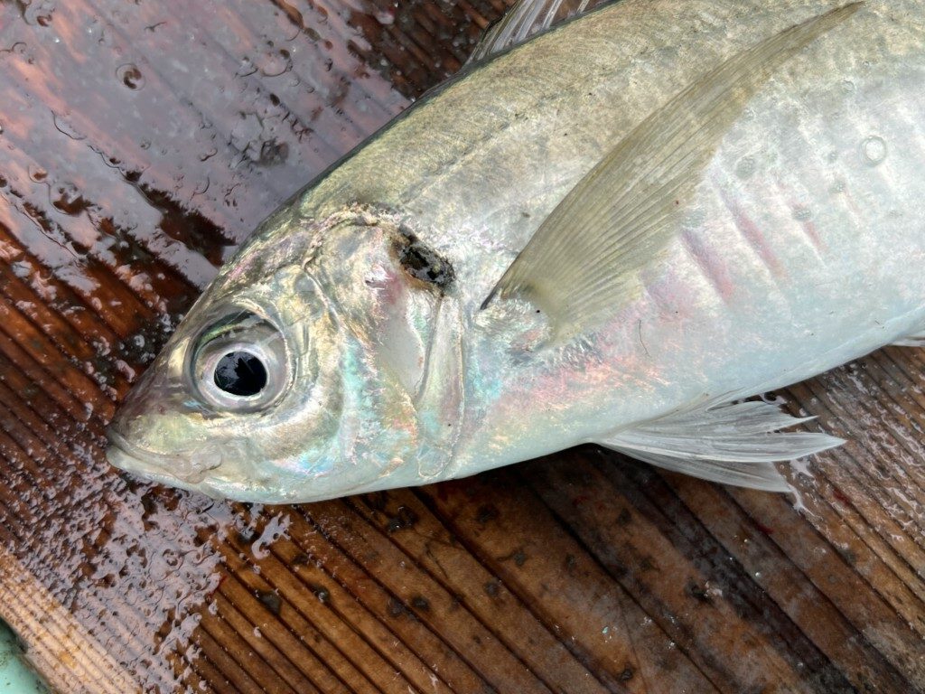▲この日釣れたアジはコンディションがとてもよく、脂の乗りもとてもよかった