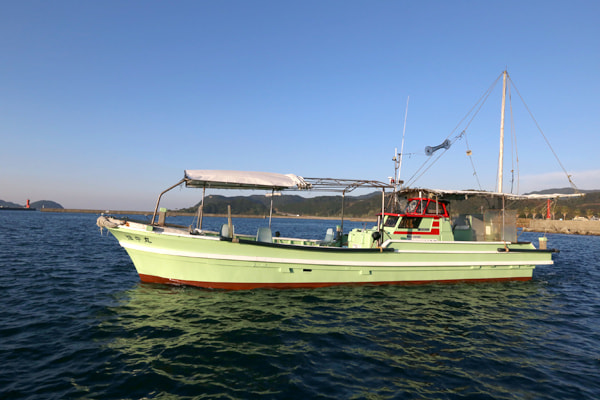 ▲人当たりのよい畑中船長が操船する、加太の畑中丸