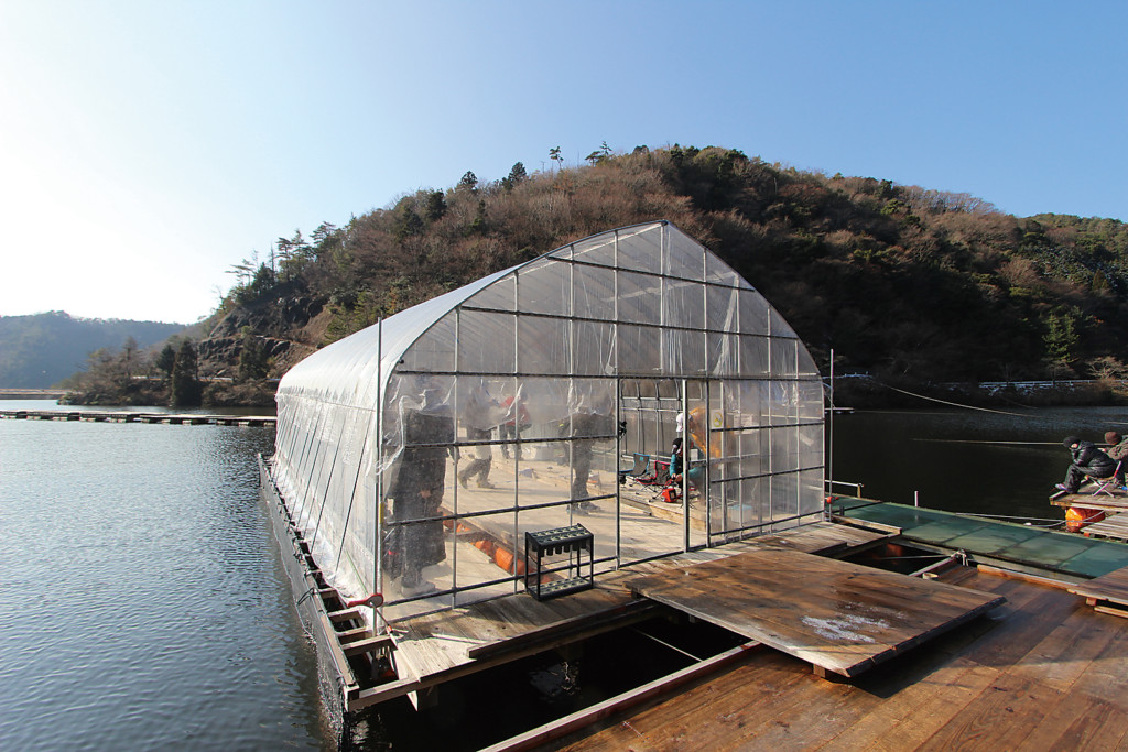 関東では「ドーム船」と言って、移動するドーム型の船の中で快適に釣りができます。