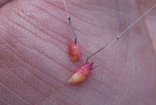 針、エサともに小さいので、最初は少し手間取るかも…。しかし、慣れるとスグにエサを付けられるようになりますよ!