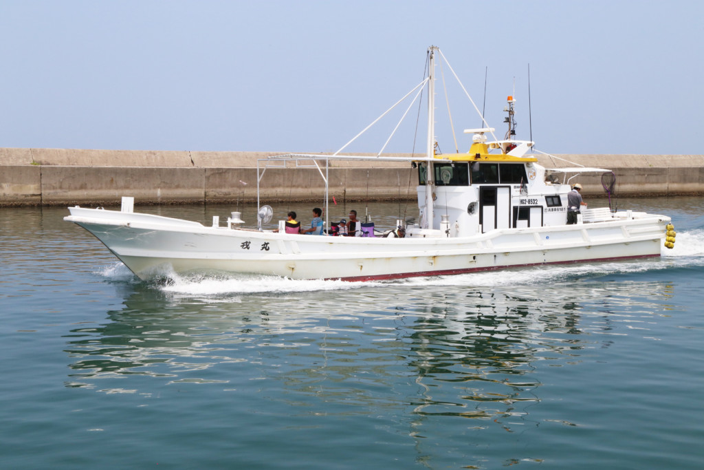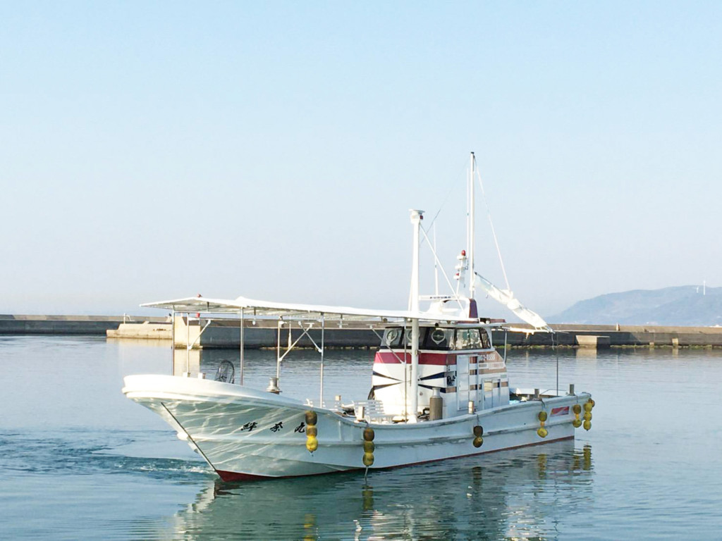 気さくで真っ直ぐな人柄が印象的な、岡田浦のベテラン底引き漁師・後舎弘船長が操船。清潔感ある広々デッキ、釣座でゆったり釣りが楽しめる。エサは使い放題。釣座は予約順