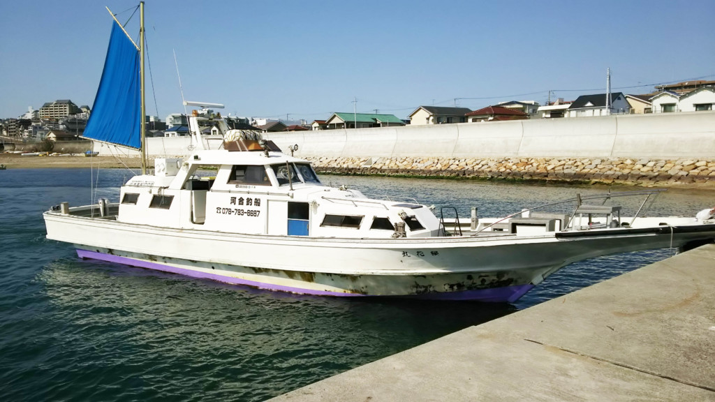 タチウオ狙いでは須磨沖に出船している乗合船。定員12人でゆったりと釣りをすることができる。潮によってテンヤを40号と50号を使い分けるので両方用意しておく方がベター