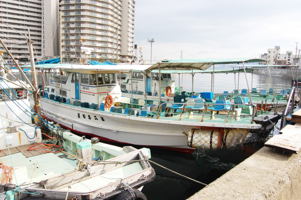 交通=阪神高速湾岸線の泉大津ICを降りてUターンし、臨海線を右折。道なりに走り、新浜東を右折。30㍍ほど走り右側に漁港の入口。右回りで道なりに進むと船着き場