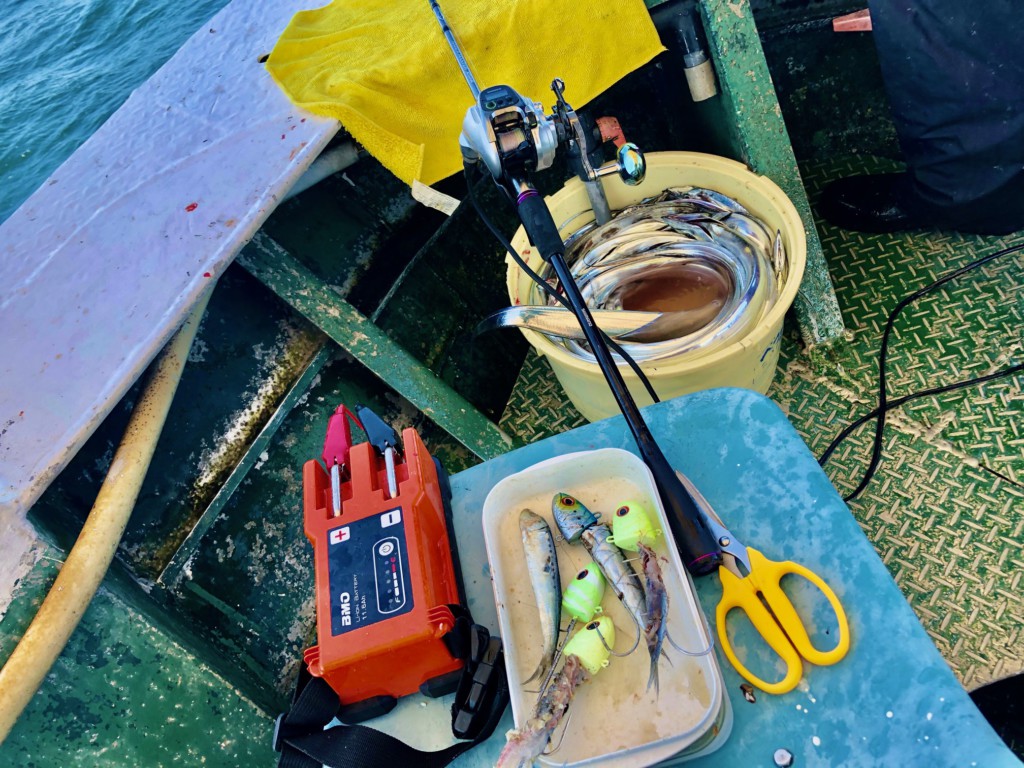 これはテンヤ投入から魚のピックアップ、締めて血抜き、テンヤ交換、再投入までの動きの流れをムダなく行うために、必ず確認が必要なこと。