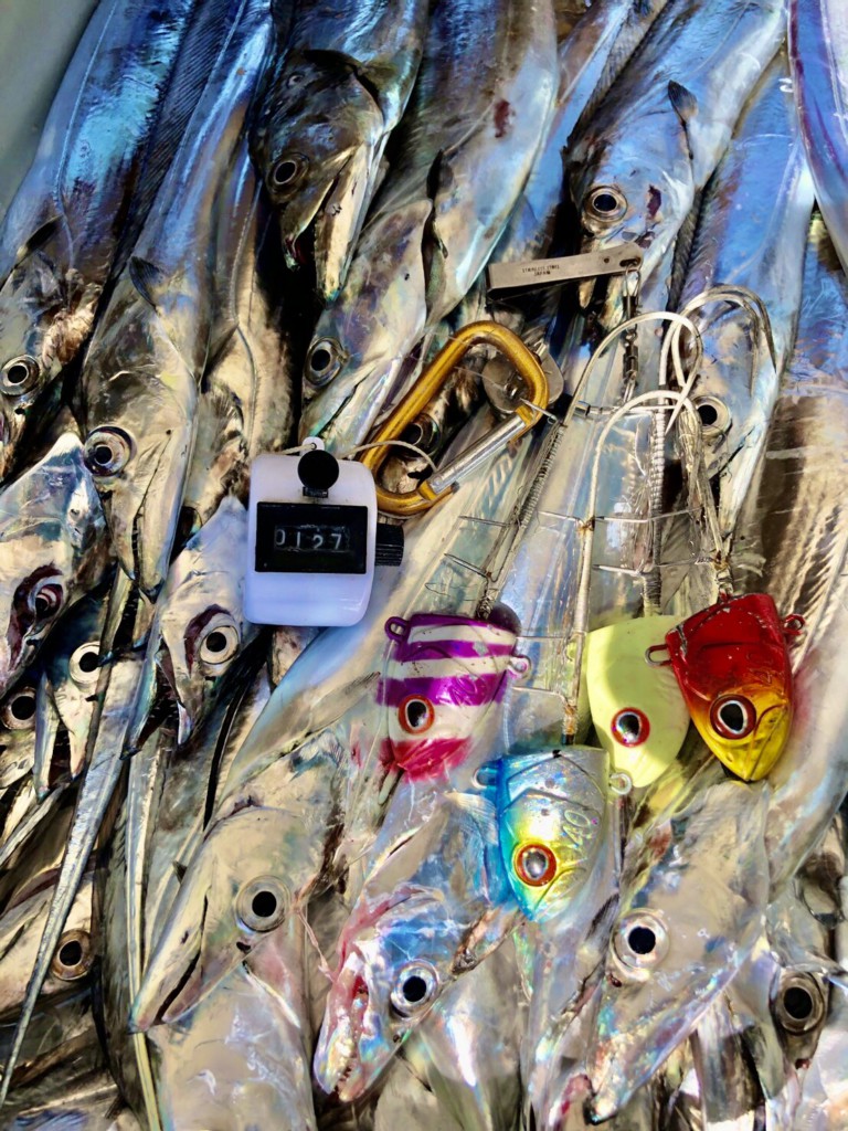 そこから船中でも数多くのタチウオが上がりだし、船中のアングラーの回収に連れられるようにして、高活性なタチウオのタナはどんどん上がってきた。