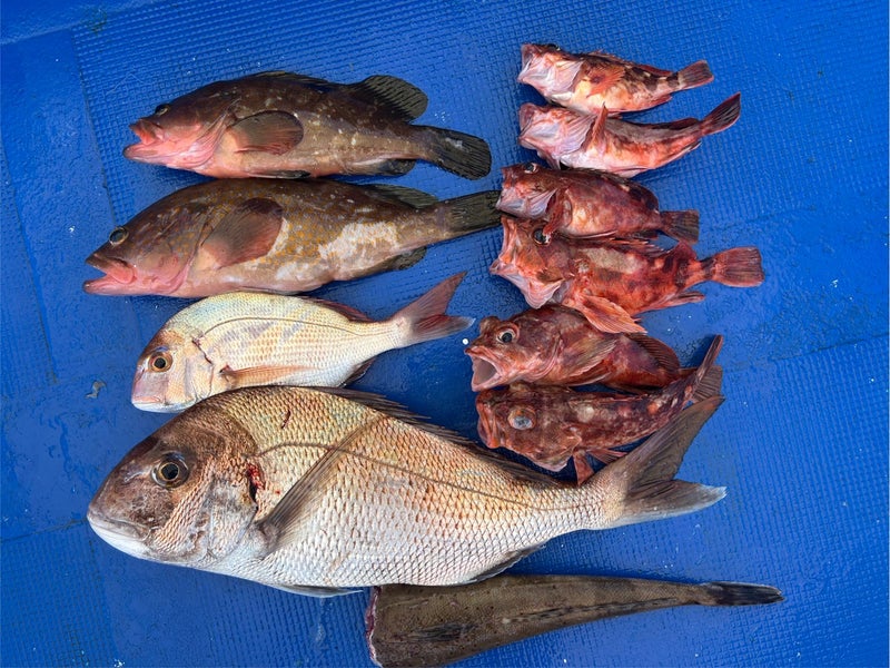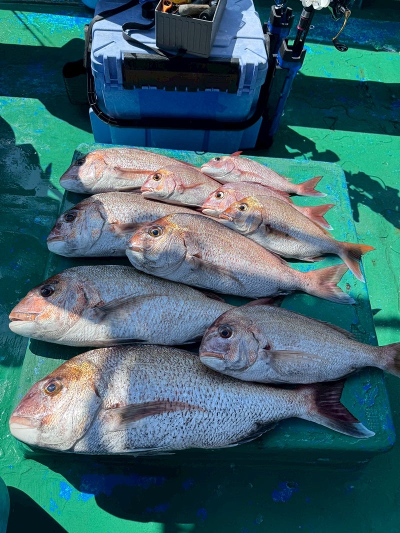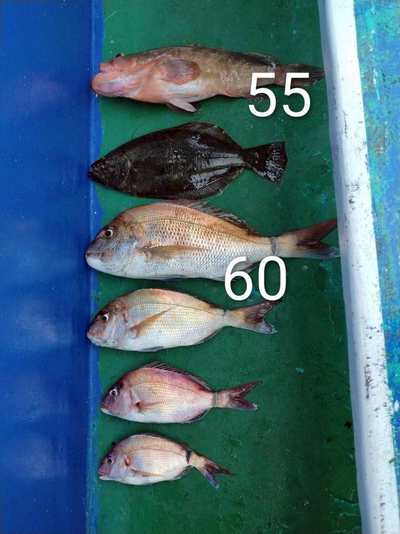 8月29日(金)は船中マダイ40尾、竿頭2ケタ、60cm超船中3尾。ほかアコウ、オコゼ、ガシラなど。