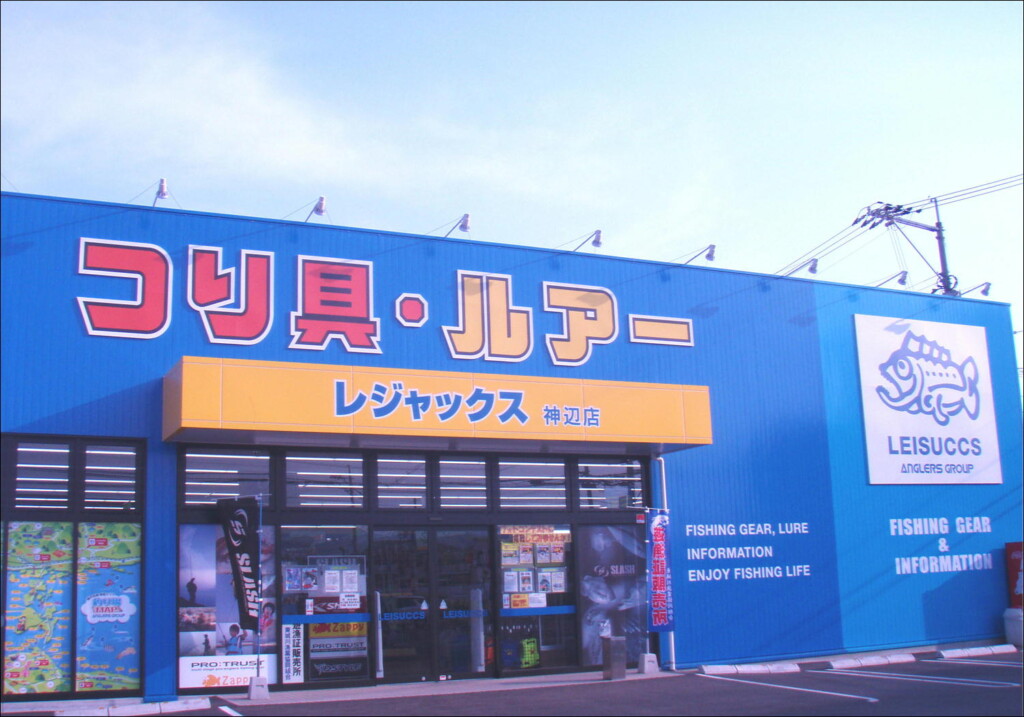 関西を中心に幅広いエリアに店舗を構えるアングラーズグループのレジャックス神辺店。船釣りやオカッパリなど、地元の釣果情報を中心に詳しいスタッフがさまざまな情報を教えてくれる。