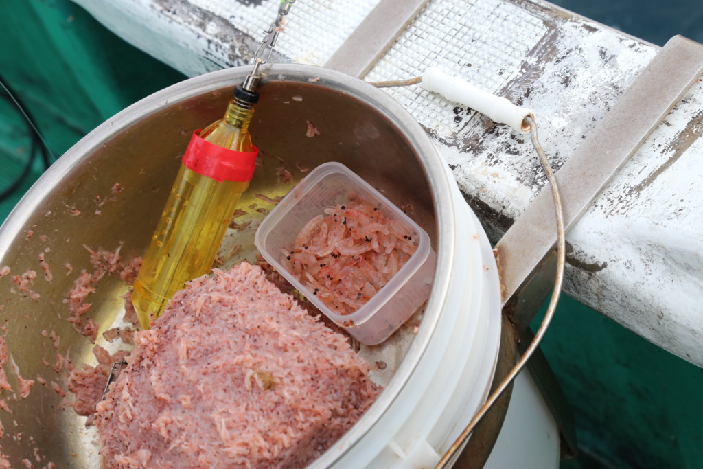 エサは、サシエ、マキエともに生のオキアミを使用します。