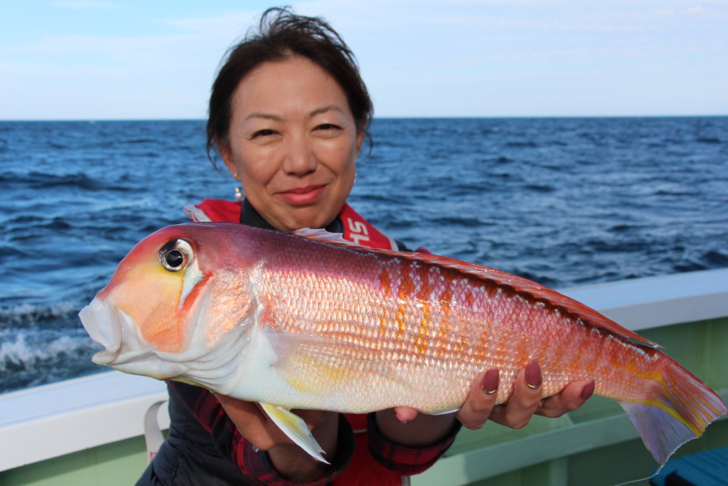すると初心者にも関わらず、北村さんは40cm級の大型まじえてアマダイを連発した。