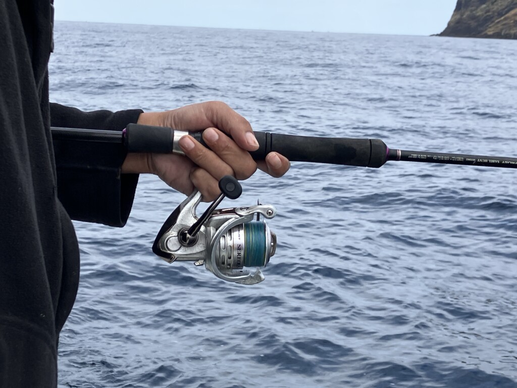 ▲タナが浅いのでスピニングリールでもOK