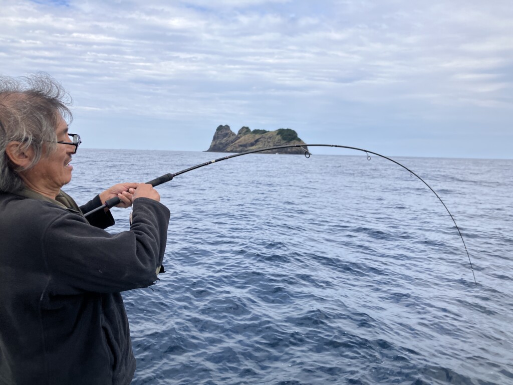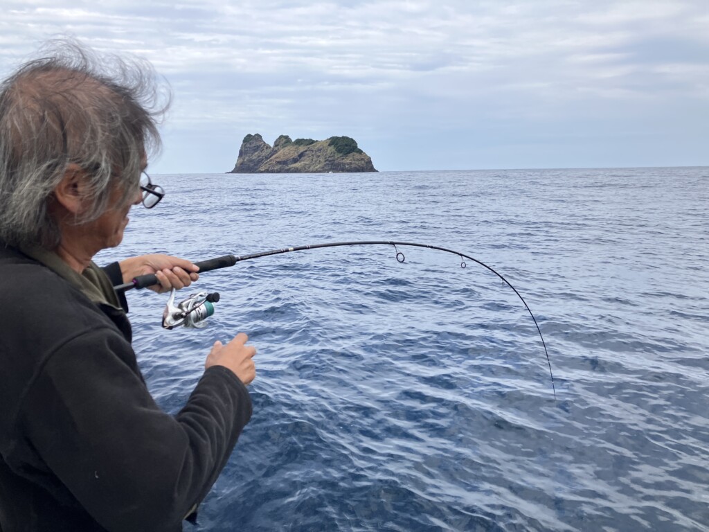 アタリは手元までゴツゴツときたり、ガツンとくる大きなものもありますが、ほとんどはイカメタルやティップランのように穂先がフッと浮くアタリや、小さくコツッと入るアタリです。この小さなアタリに、なかなかタイミングが合わずにテクニカルですが、上手く掛け合わせてガツーンときた瞬間の興奮はタマりません。