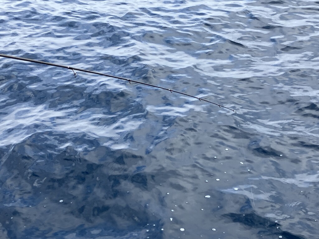 ポイントの水深は50m以上ありますが、ウスバハギのタナは水面から10mほど。深い時でも20mも下ろせばOK。